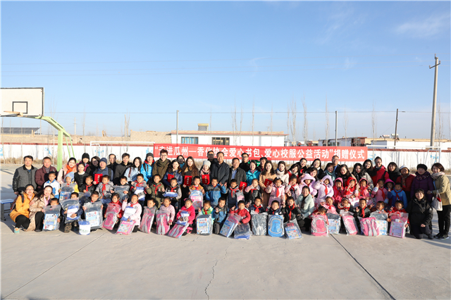 11月16日,名臣健康用品股份有限公司派出代表不远千里,随中国香化协会走进西北戈壁,来到甘肃河西走廊西端,古丝绸之路的商贾重镇瓜州,参加由中国香精香料化妆品工业协会发起组织的爱心公益活动,为山区孩子捐赠爱心书包、校服和文具,传递名臣人拳拳爱心。